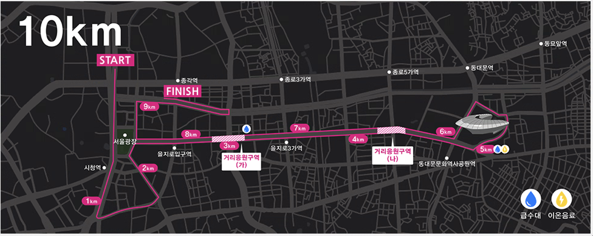 오늘의 10km 마라톤 코스는 아래와 같았습니다.