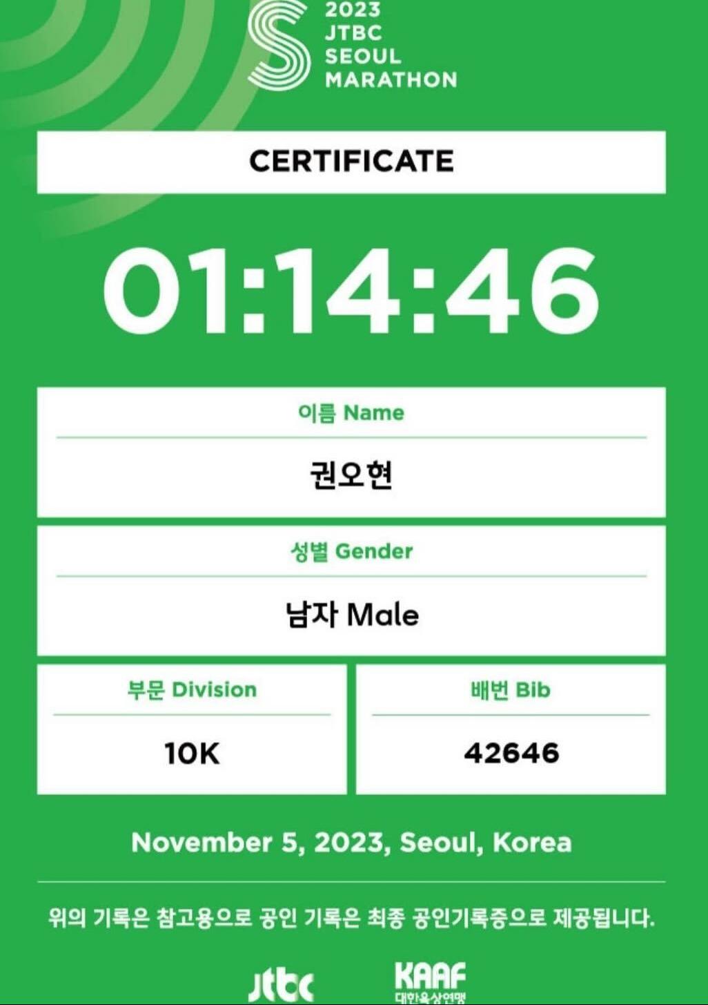 2023년에 JTBC 10km 마라톤을 뛰고 나서 처음 뛴 마라톤이었어요.